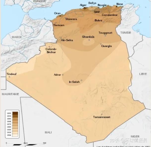 1880年法国议会以立法的形式,将阿尔及利亚纳入法国本土。与此同时,欧洲列强们起头了瓜分非洲的怒潮。法国不甘落后,于1880年-1920年将大半个北非和几乎整个西非收入囊中。阿尔及利亚的南部疆界也不竭拓展,截行1902年,阿尔及利亚的天文疆界正式确立。
