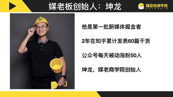 简单介绍本身,我是坤龙,90后新媒体老司机,媒老板商学院开创人,处置新媒体9年,专注新媒体营销和私域流量的培训,目前已经在知乎答复上百个问题,引流数万人,知乎粉丝66000+。