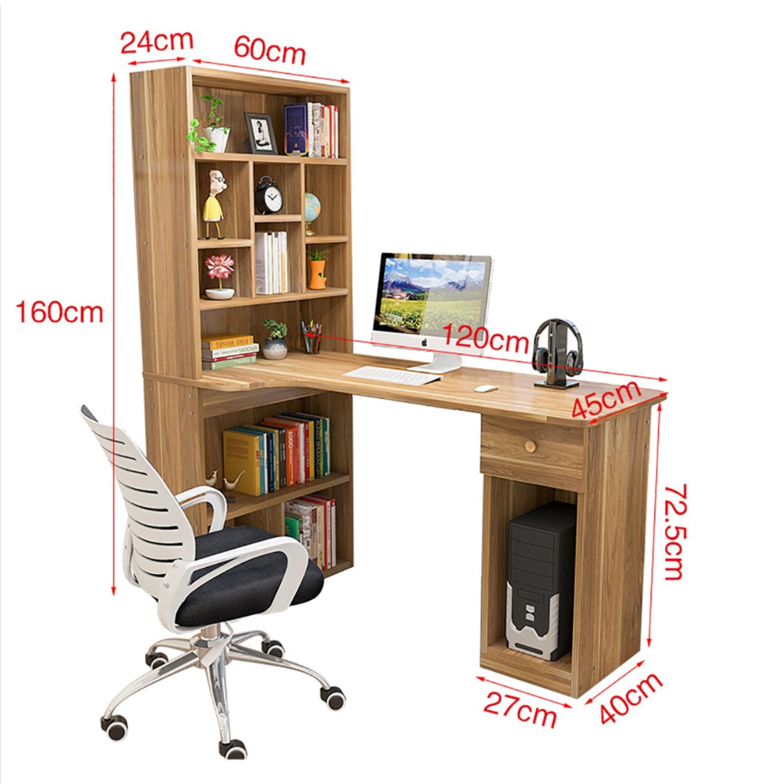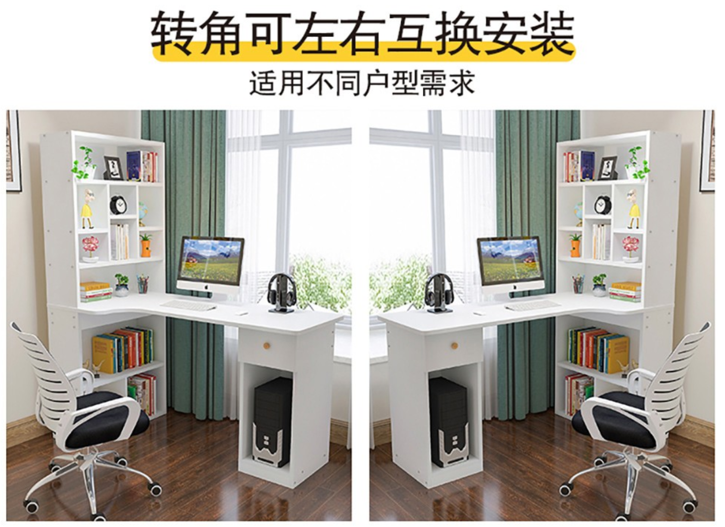 斯梦熊贝 书柜 北欧转角书柜木纹台式书柜椅家用