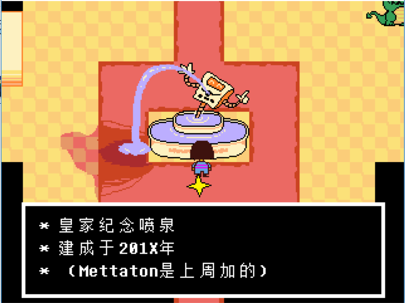 如斯可见,Mettaton不单单是个娱乐机器人,并且是核心到皇宫那条线路最初的守护人。因而,国王Asgore才会允许他在核心门口的皇家纪念喷泉上安上本身的雕像。