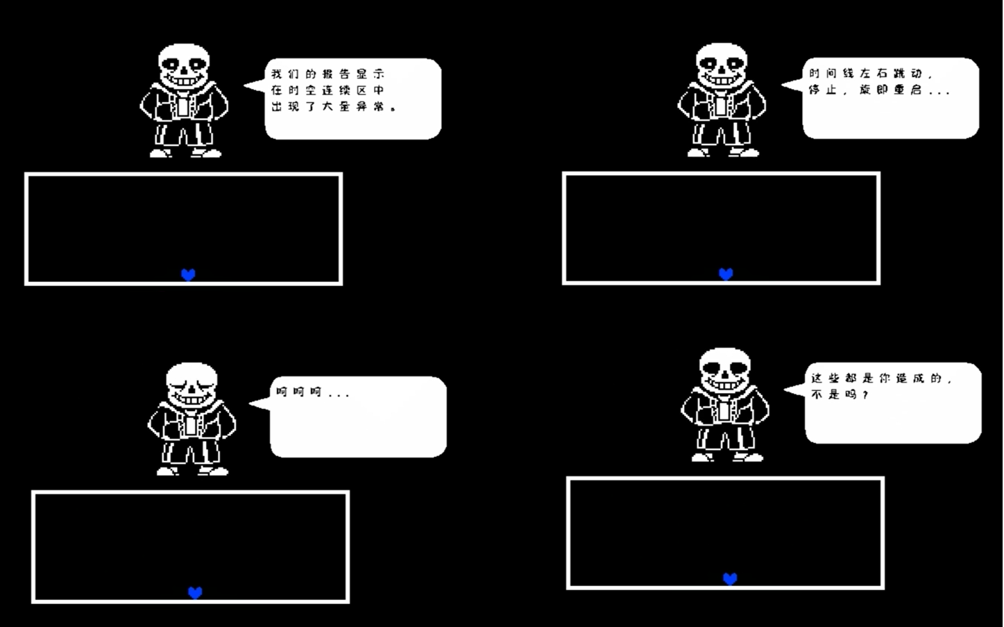 两个回合的台词,关于异常者的厌恶;Sans,似乎恨透了“在时空持续区形成大量异常的人”。而玩家的存读档行为,包罗Frisk灵魂破裂之后的主动读档行为,毫无疑问,都很可能会形成时空的异常。而Sans出于那一层面,关于Frisk的设法,几乎可想而知。