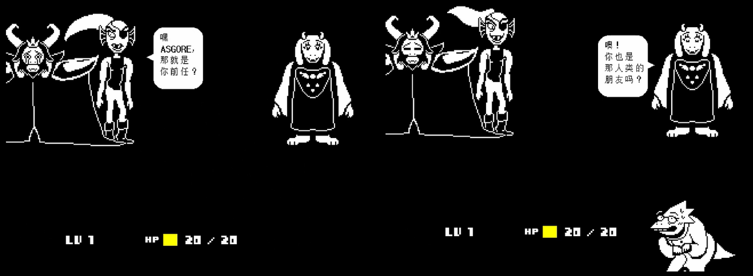 那也可能是Chara若是在非搏斗线路和Toriel或者Asgore对战的时候只会有“HP很低”的担忧提醒以及物品栏的庄重描述,却没有对双亲一样的强烈的豪情激动的原因。(那里吐槽一句,Mettaton战中也会有HP很低的提醒,Papyrus和Undyne战都没有,是因为Chara是个颜控(?)仍是因为Chara和鬼魂Mettaton有过旧交?)