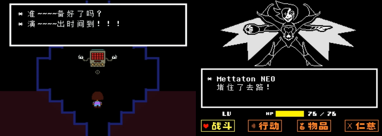 攻击已经高于通俗线的羊夫妇了,可惜那是搏斗线。再看看介绍,能够发现那是”Alphys博士的最伟大的创造“。并且,若是杀死Mettaton NEO,机械身躯就会自爆,连一点工具都不会留下,而杀死Mettaton EX会留下盒子形态的报废身躯。可见,毁坏Mettaton NEO才是更彻底的毁坏。