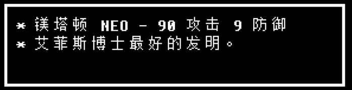 小我理解是,玩家已经杀了99攻99防的Undyne the Undying并搏斗了热域核心的所有怪物,所以90攻9防的Mettaton Neo会被秒杀。Mettaton Neo的战斗力放在通俗线绝对不弱。看到的是……外形时髦而又酷炫的Mettaton NEO。