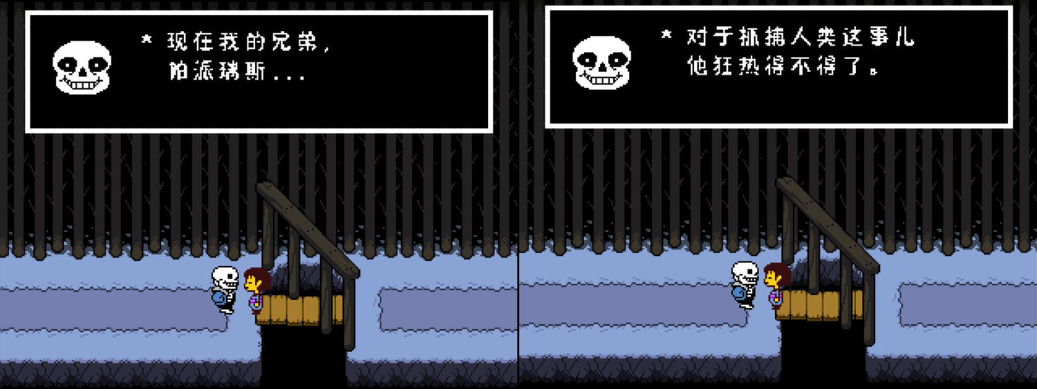 PSS:骷髅兄弟,Papyrus和Sans,抵达雪镇的时间应该在六个孩子灭亡之后。因剧情中明白提到,Papyrus热爱抓捕人类那一工做: