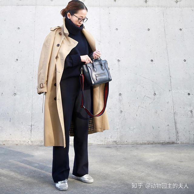 S好男生不敢穿太长的风衣,bemi可不是哦,件件风衣都到膝盖下,并且仍是平底鞋,当然瘦是三个原因,别的就是内搭要色彩有别离,构造设想要简单。
