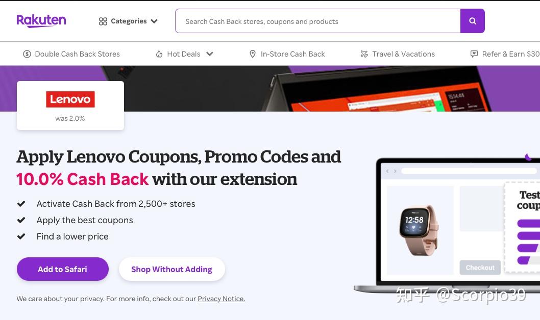 有两种办法利用那个返现网,第一种是在阅读器安拆插件,在需要的时候,点击插件的按钮,即可激活返现。第二种也是我常用的,就是先翻开Rakuten网站,在网站上点击你要去的网站,好比联想或者Dell,如下图,间接点击“Shop without adding”就跳转到联想官网停止购置了: