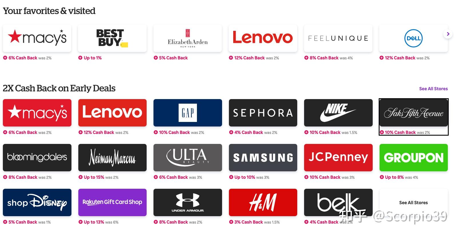就是若是从Rakuten的窗口跳转到以上彀站的官网购物的话,会给你一部门返现(2%-10%)。好比一般联想官网是5%-20%摆布的返现额度,如今是12%,好比黑五你要一台1000刀的联想电脑,就能够能够返现120刀。梅西百货有6%的返现,雅顿也有5%的返现。若是你晓得Rakuten(Ebates),但还没有注册过,那么间接点那里能够通过那个链接注册,新用户注册后通过Rakuten的链接去其他网站消费30美圆之后会送30美圆。注册链接是:Earn Cash Back at stores you
