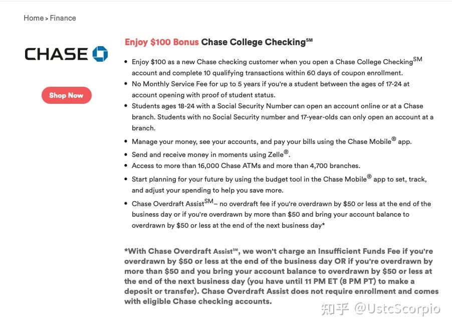 Chase College Checking账户(100美圆开户奖励):Chase College Checking是最受本科学生欢送的收票账户,开户前提如下(按重要性排序):