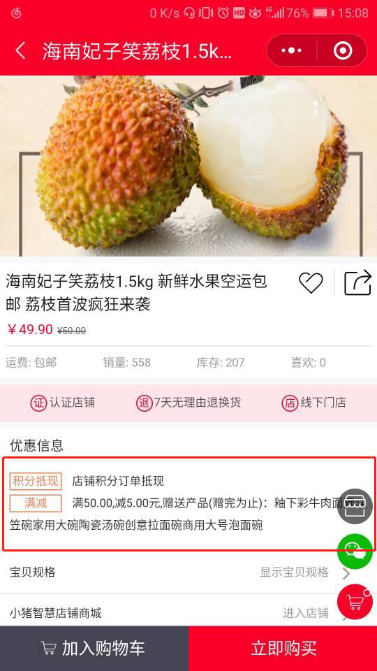 店家在前台增设货品交易公益活动类型,可按照货品属性增设满减、满送、满减送、满包邮、满减送包邮优惠重要信息,利用者透过前端显示的那些重要信息领会货品公益活动,削减订单成交率。透过各类公益活动战略诱导利用者参与公益活动,满减送公益活动可削减利用者交易积极性。