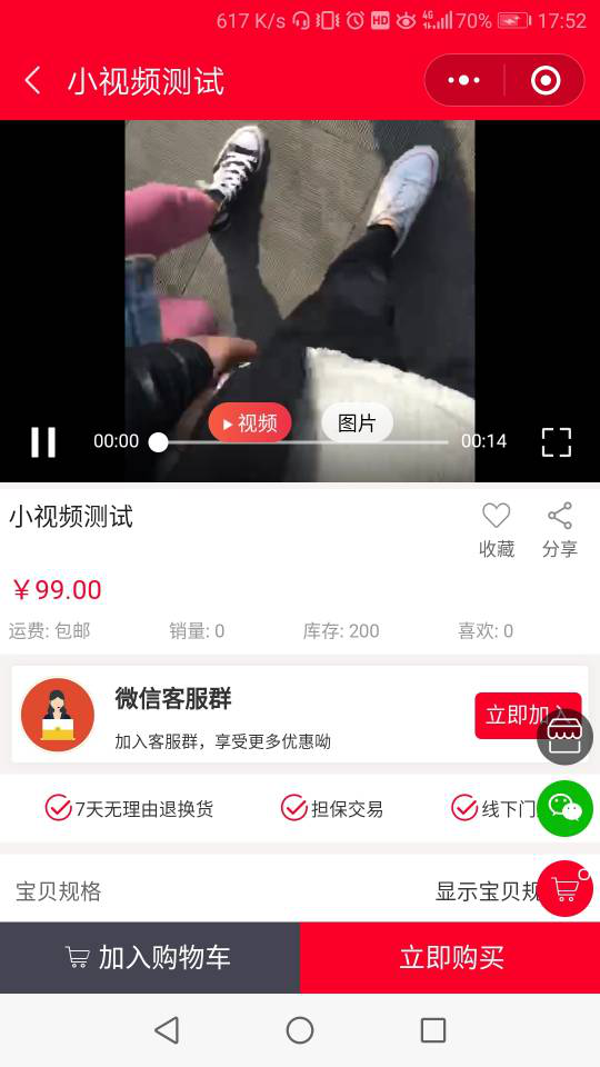 店面货品交易展现页,削减货品视频展现机能,店家在前台加进货品视频音,愈加立体的展现实物货品,优化了货品详细重要信息。利用者可透过货品视频愈加全面有实在感的看到货品,削减了网购可信度,提拔利用者交易胜利率。