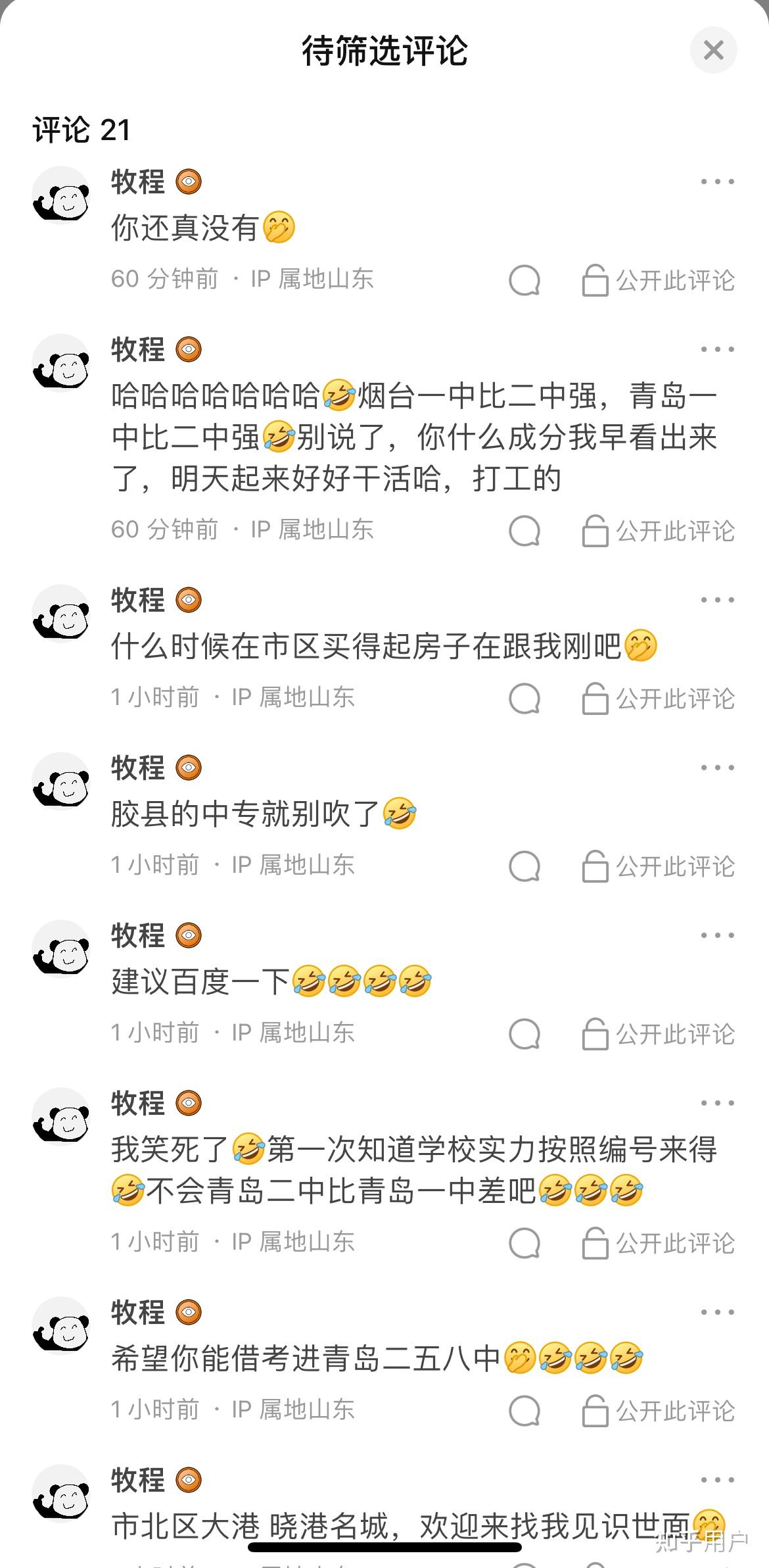 之前阿谁喷我的知乎账号“牧程”,在此外答复里征婚的时候讲不挑剔女方学历,因为他本身也就个“烟台的垃圾双非”,但在我那自诩是211“青岛油大”的学生。