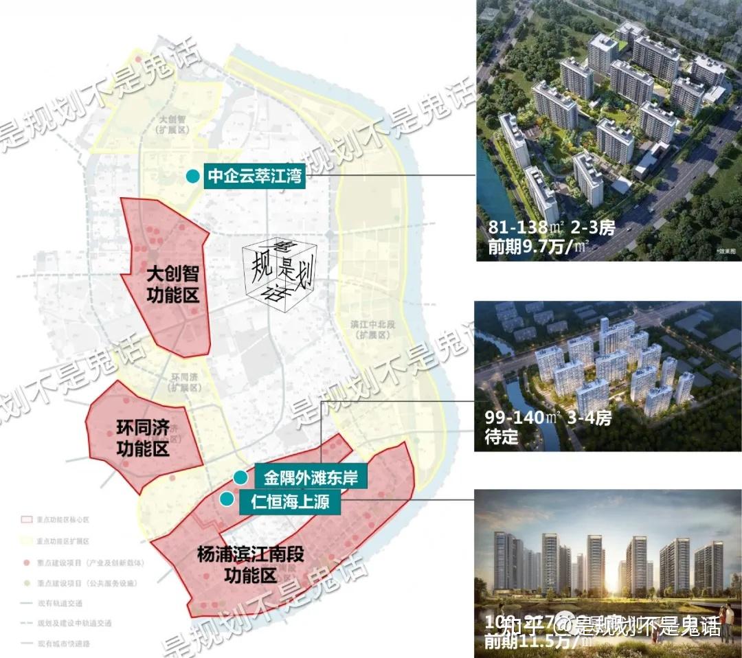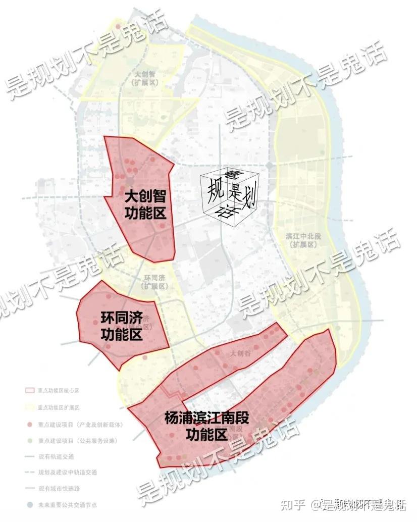 大创智功用区、环同济功用区、以及杨浦滨江南段功用区。