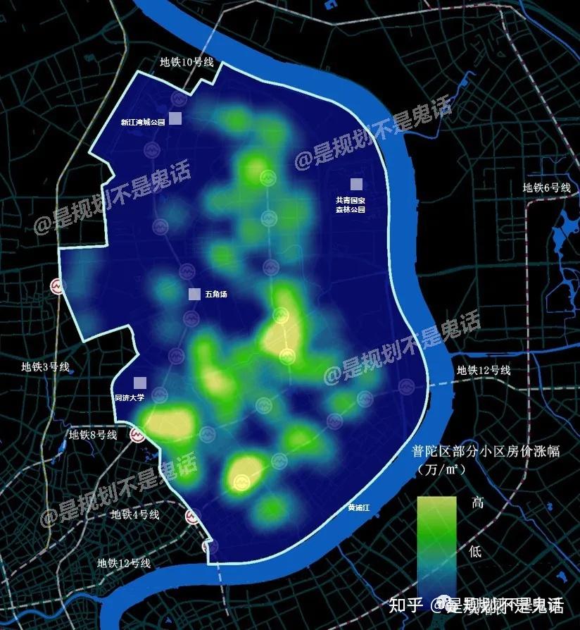 【杨浦区各小区房价涨跌幅散布图】@鬼话宝从上图我们不难发现:房价涨幅较高的小区集中在中部及西南部区域。