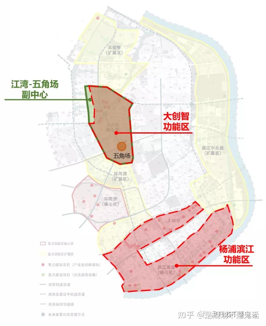 【大创智功用区与副中心比照图】@鬼话宝现实上,大创智功用区根本就是以江湾-五角场副中心为主。江湾-五角场做为主城开展更好的副中心之一,不管是财产开展、仍是配套完美等诸多方面,其在杨浦区是具有绝对的资本优势。