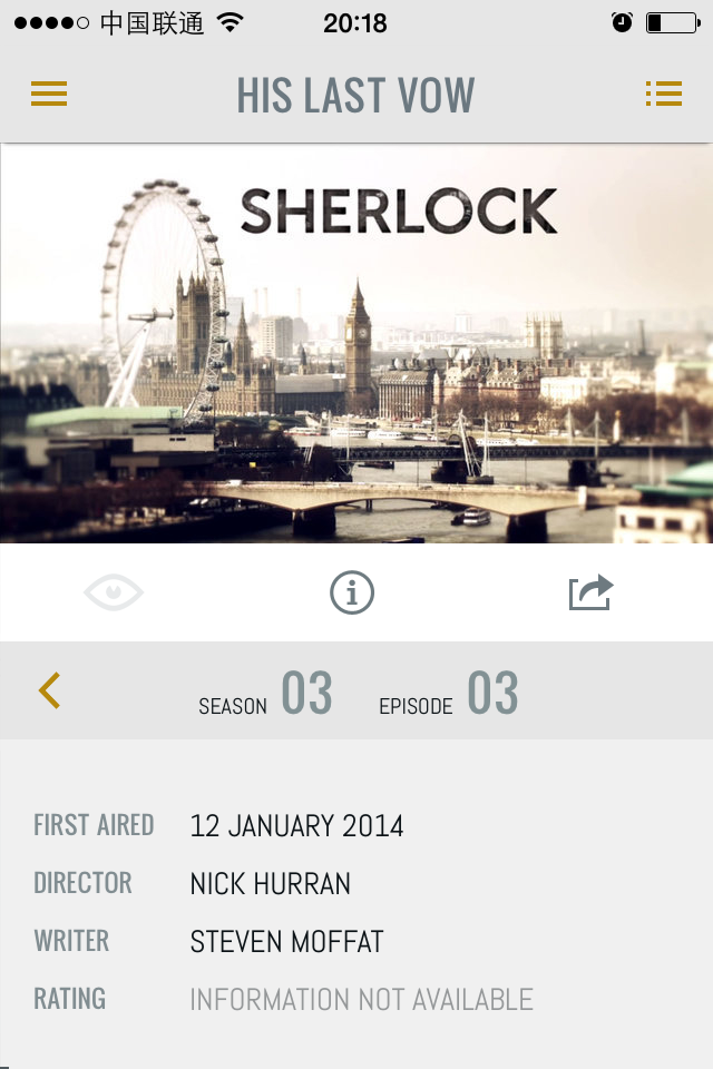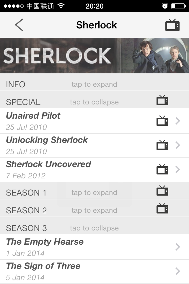 Sherlock第三季的首播日期在BBC公布后的2个小时内,全数准确显示,时效性秒杀所有同类App!要晓得iTV Shows大要在2天后才更新数据。