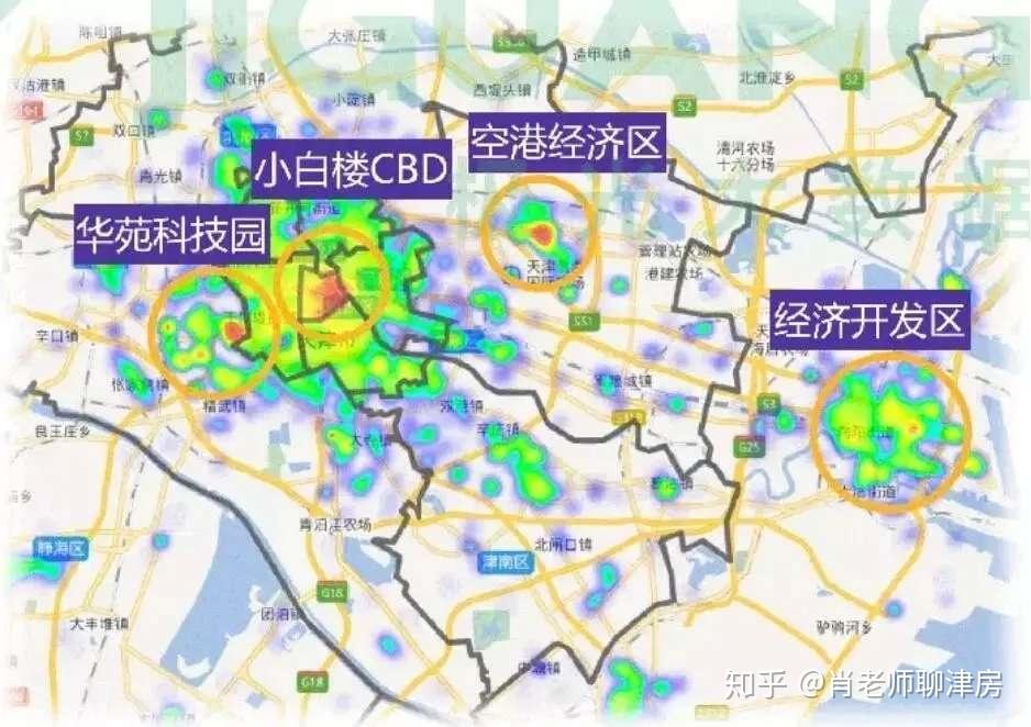 和平区小白楼CBD、南开华苑科技园、滨海新区空港经济区,和滨海经济开发区。我们也能够本身通过百幅地图,在迟早顶峰时间,搜刮热力求,就会发现天津市的几个热点板块,不是就业中心,就是贸易中心。