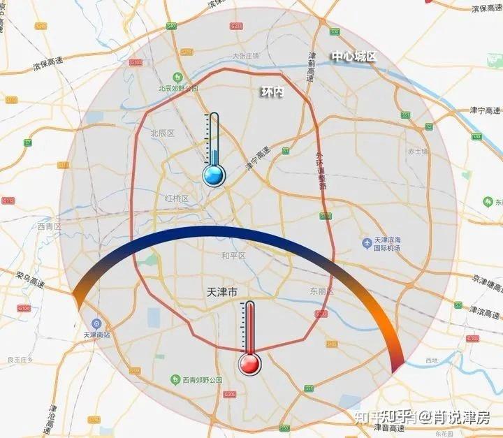 贸易富贵意味着生齿聚集度高,就业时机多意味着消费程度高,所以天津市区的开展水平,以海河为边界,是南强北弱,房价也是南高北低,固然北部新区要划为新外环内,但是房价还不如环外的津南和西青。