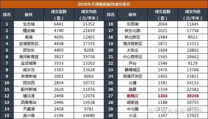 除了二手房,新房方面,市区热点板块,热点项目,以及西青,宝坻城区,武清,滨海一些热点板块的房价,表示还不错,跌幅不大,去化率很高低图是2020年天津市各区新房板块销售排名。