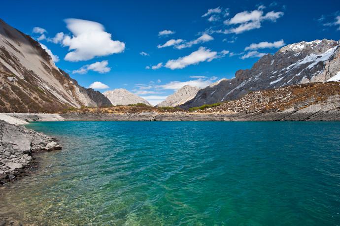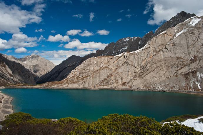 相机记录下的则藏海,四周都是裸露的岩石,有没有一种稻城亚丁牛奶海的赶脚?