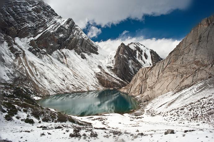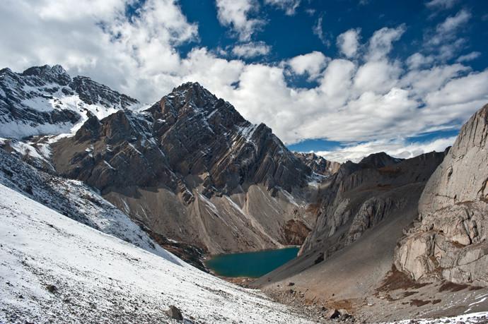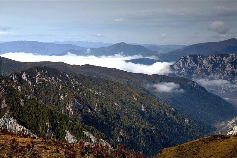则藏海的南面有两座均匀海拔约4800米的山岳,翻过那两座山岳之间的垭口,就分开了则查洼沟,进入了阿翁沟的地界,那是两条位于岷山深处,未经旅游合做开发,未经污染,拥有绝美风光的山沟