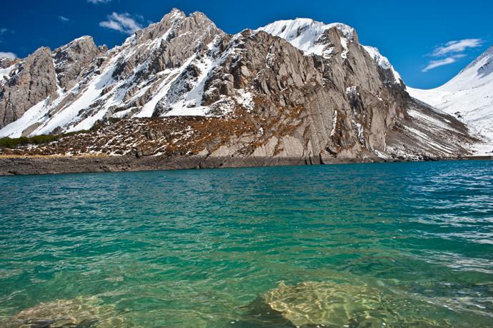 则藏海的湖水源自雪山融水和地表降水,没有颠末任何天然与人类的污染,非常纯净,清亮见底