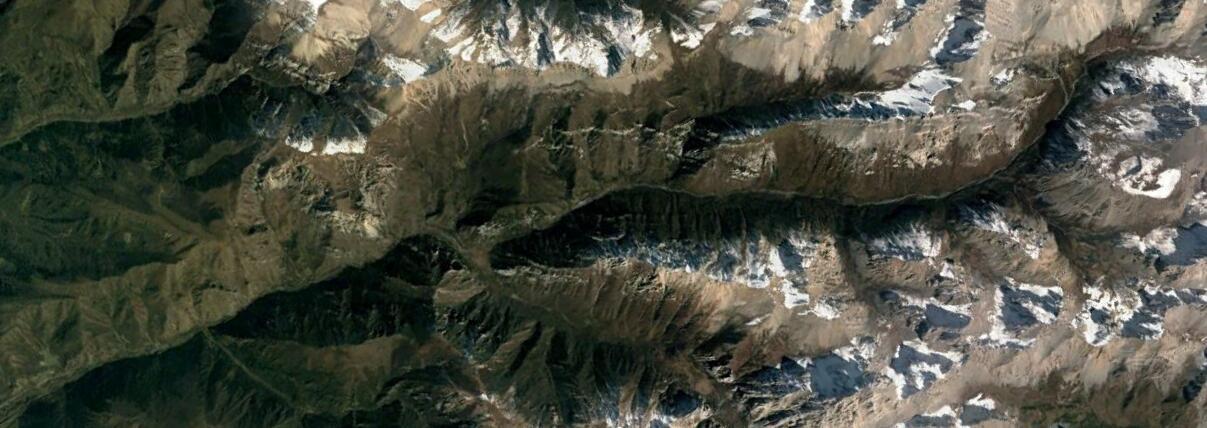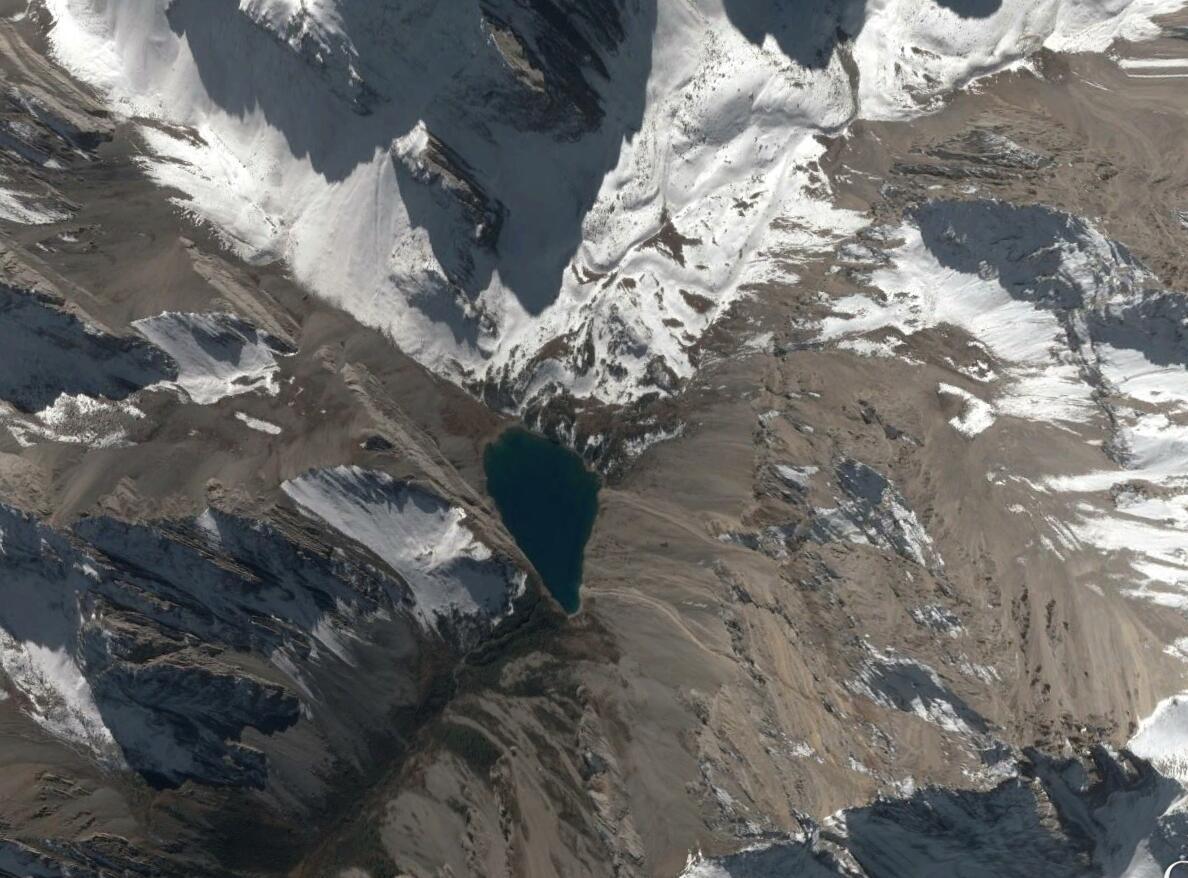 那是人造卫星世界地图上的源海,三面被常年积雪的山岳所环绕