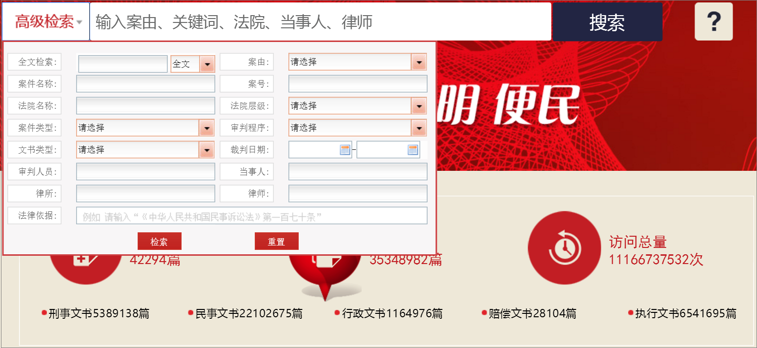 中国更高人民法院开设,权势巨子可信,需用于查阅国内裁判文书,可做统计数据统计来源