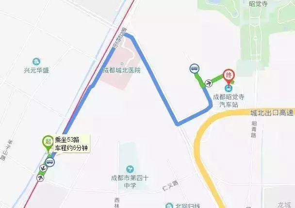 昭觉寺汽车站。搭乘地铁3号线抵达昭觉寺南路,从C口出搭乘公交53路/83路车程5分钟即可抵达。