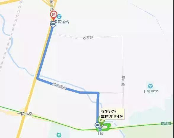 十陵客运站。乘坐地铁4号线抵达十陵站,从C口出搭乘公交97路车程约10分钟即可抵达。