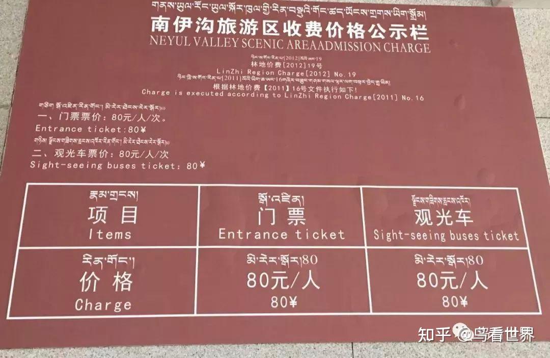 他们是四月初去的墨脱,其时仍是冬游西藏政策规定的免票期间,因而他们去南伊沟是没买门票的。但是有一得必有一失,固然免门票,但是你必需得买参观车门票啊,详见下面的价目表