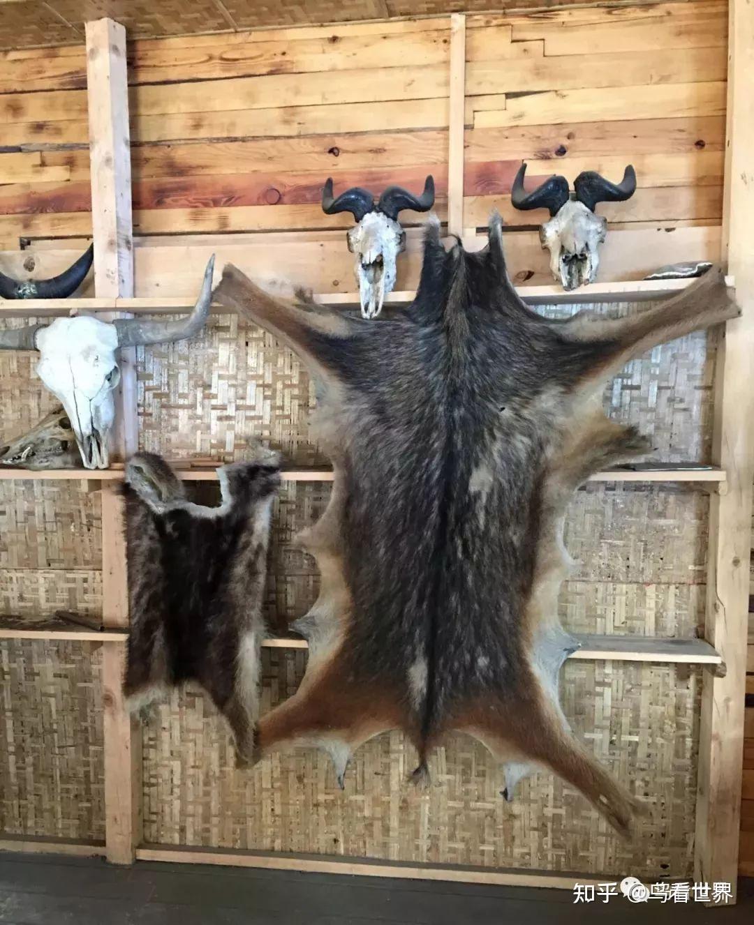 有圈养的野猪、有打猎的动物皮(估量是以前的,因为如今不允许打猎)