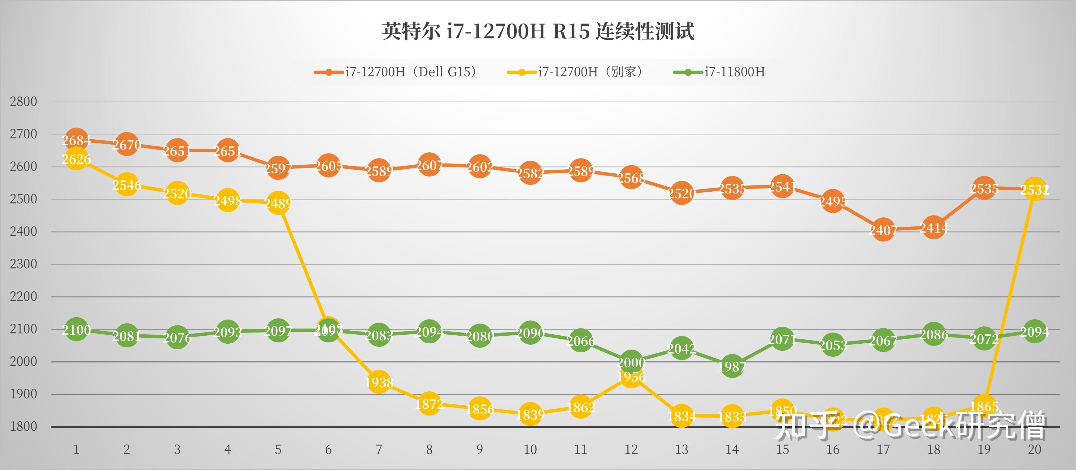 「3DMark-CPU Profile」:单线程 953 分,更大线程 7171 分「GeekBench 5」:单核性能 1687 分,多核性能 12848 分「Corona 1.3 Benchmark」:衬着测试耗时 1 分 21 秒「FritzChess Benchmark」:相对性能倍数 68.48,每秒千步 32869「7-ZIP 基准测试」:压缩评分 86.670GIPS,解压缩评分 101.686GIPS,总体评分 94.178GIPS「wPrime Benchmark」:32M(单核性能)耗时 9.533 秒,1024M(多核性能)耗时 335.99 秒此外,通过「CINEBENCH R15 停止 20 次的持续测试」能看到,i7-12700H 释放了 2407-2684cb 的性能区间,衰减幅度在 10.32%,有意思的是我拉取了另一款同样搭载了 i7-12700H 的笔电数据,能看到 Dell 游匣G15 2022 的整体颠簸曲线更小,那申明固然CPU设置装备摆设一样,但差别 OEM 厂商的调校优化和硬体配套也会影响到整机性能持续释放到不变性,Dell 显然是傍边的优等生。