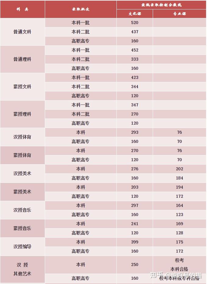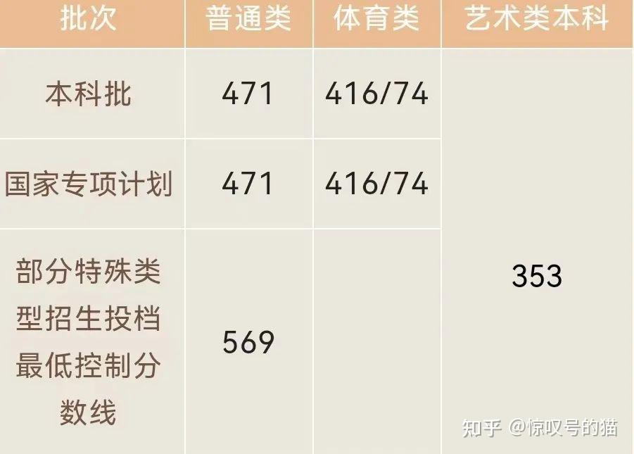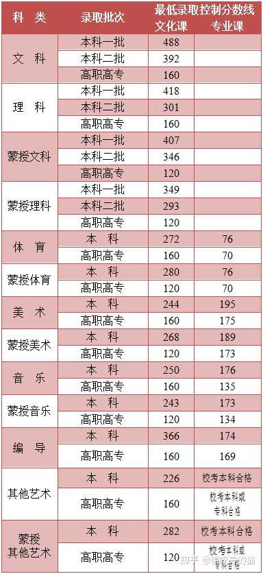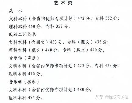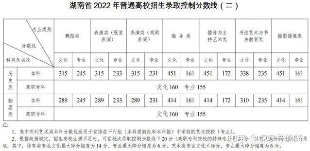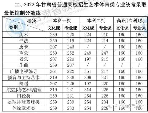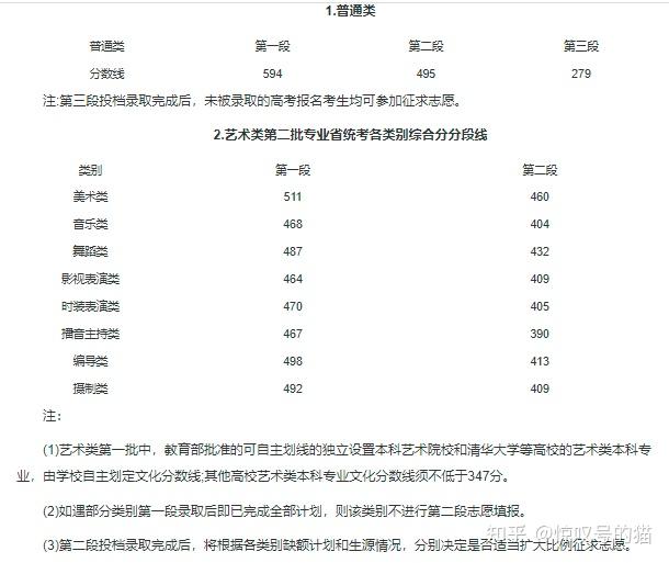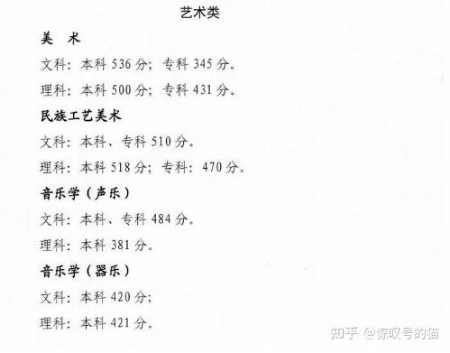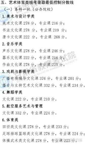 艺术类专业的登科由文化分数线和艺术统考分数线双线控造。各批次的登科更低控造分数线别离为: