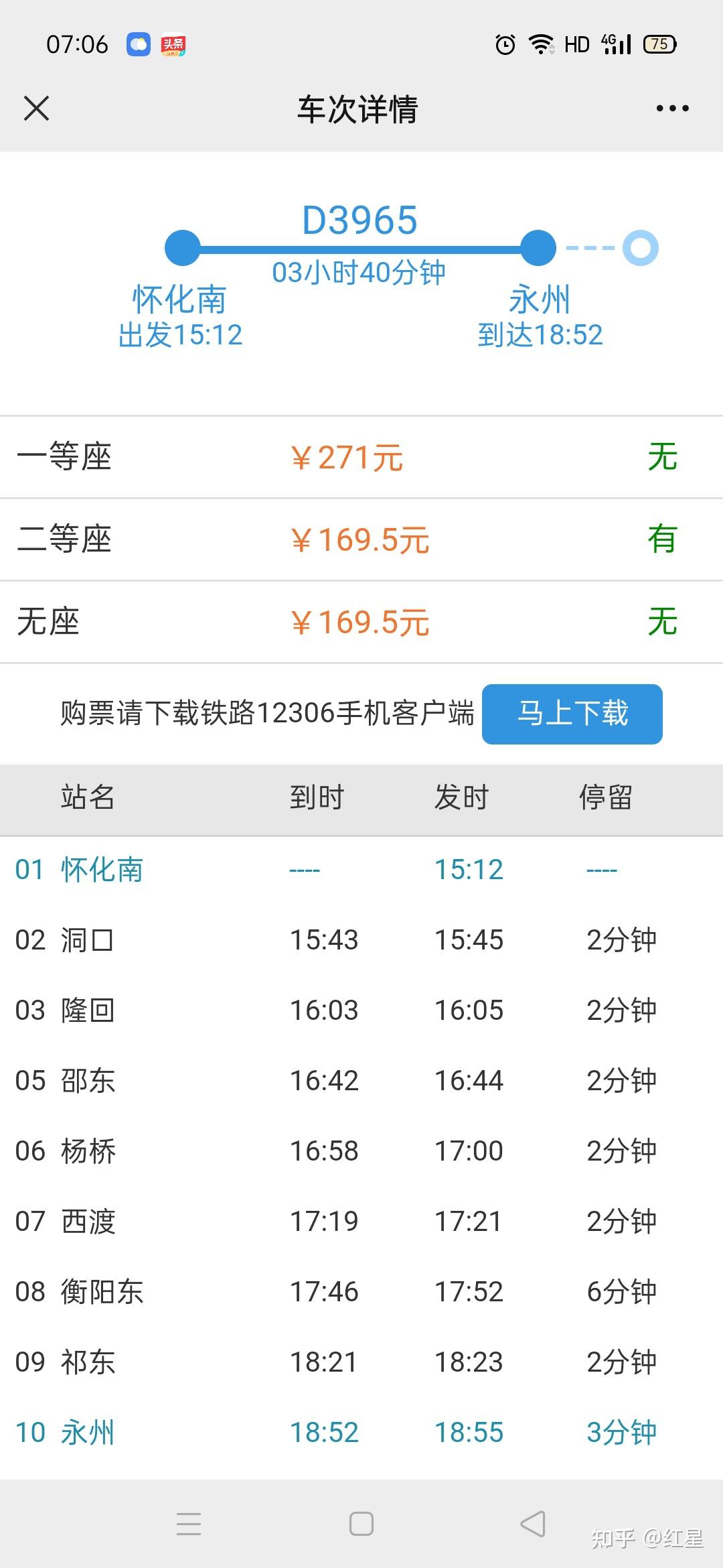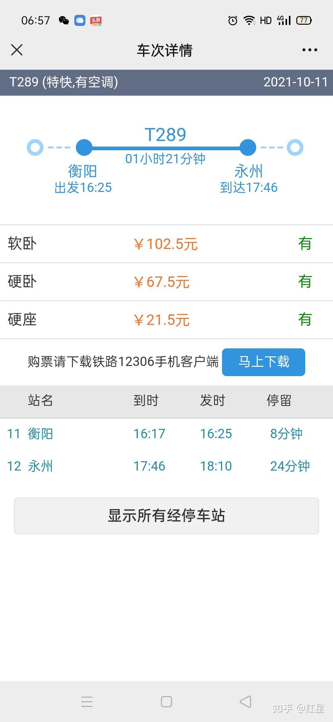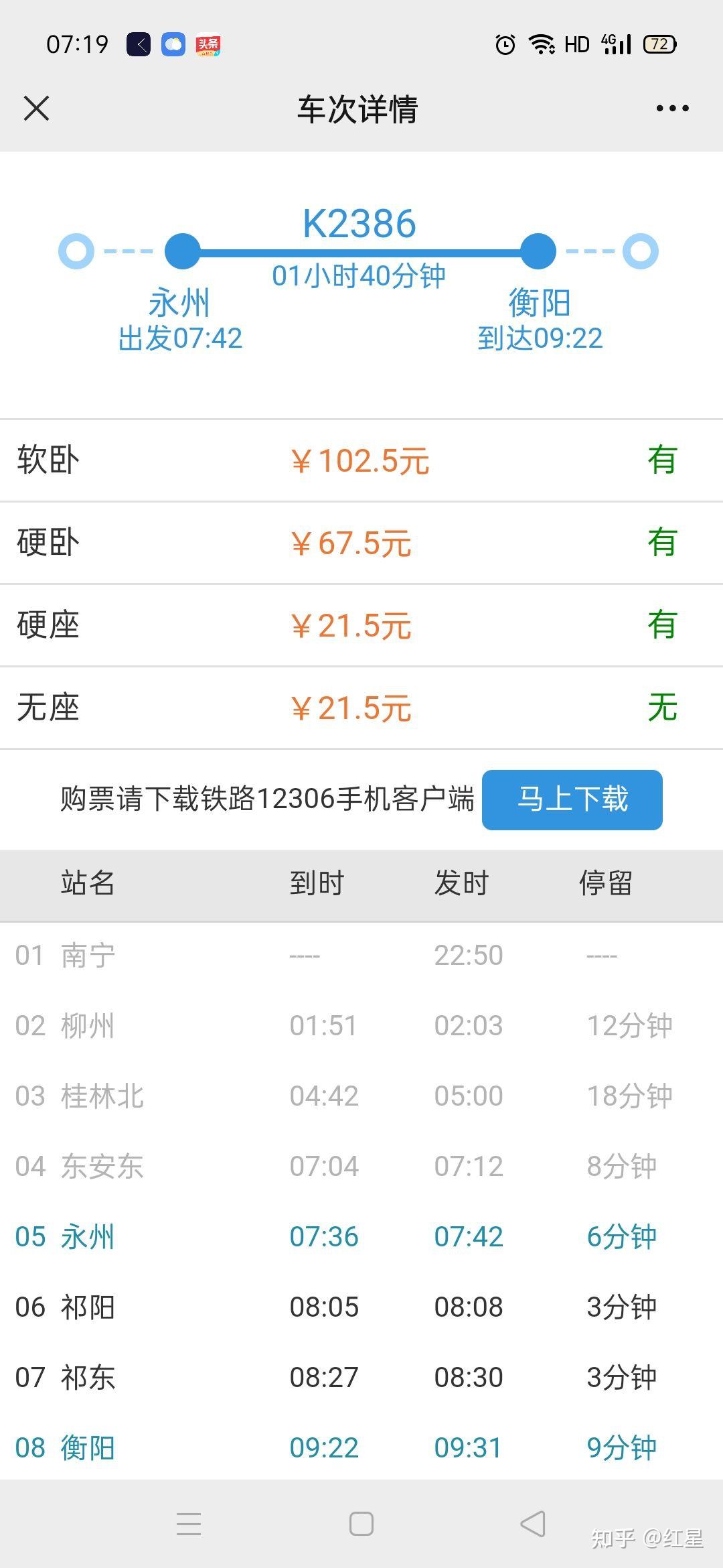 旅客列车详情见下面3张截图所示,时刻内外标注蓝色字体的,别离是上车车站和下车车站的驾车及到站时间。