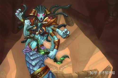 艾萨拉女王和她的亲信在堕入大海时为了存活承受上古之神的呼唤,全数改变成能够在海底保存的半人半蛇身的生物纳迦。
