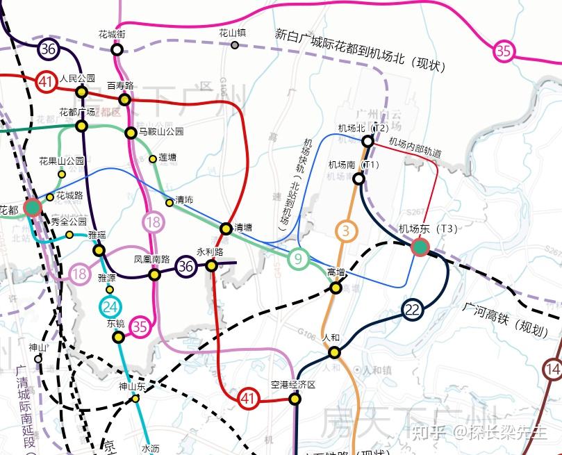 绝大部门站点和线位都在花都区。但高增站将来将成为机场CBD的重要构成部门。