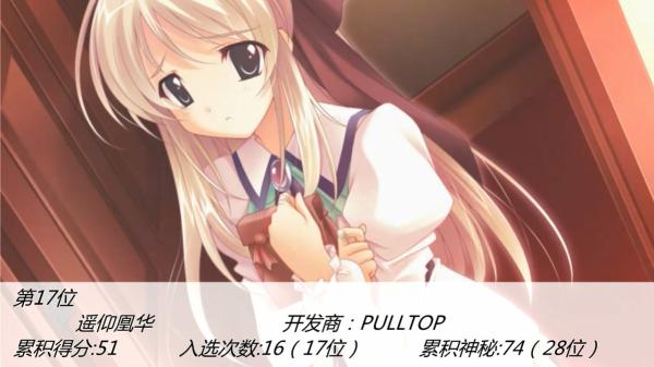 2. 莫非是说有什么样值得称赞所保举的galgame,我觉得上了榜的都是非常出色并且值得称赞所保举的典范之做做品。所以,无此下面的也不料味著不太好,能原则上拉出来所保举嘛