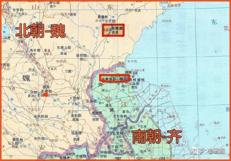 |北魏期间南青州范畴及东莞郡、X治位置图| 造图-大天文馆