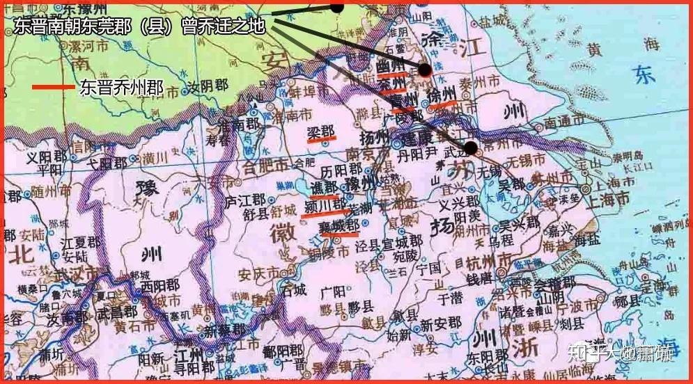 |东晋-南方“侨州郡X”散布| 底图-谭其骧主编《中国汗青地图集》