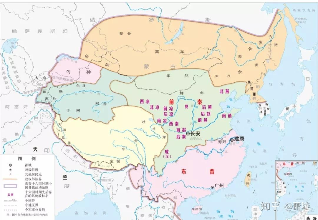 晋室衣冠南渡,成立了偏安东南的东晋王朝——江苏以北的北方地域陷入了五胡十六国纷争的场面。