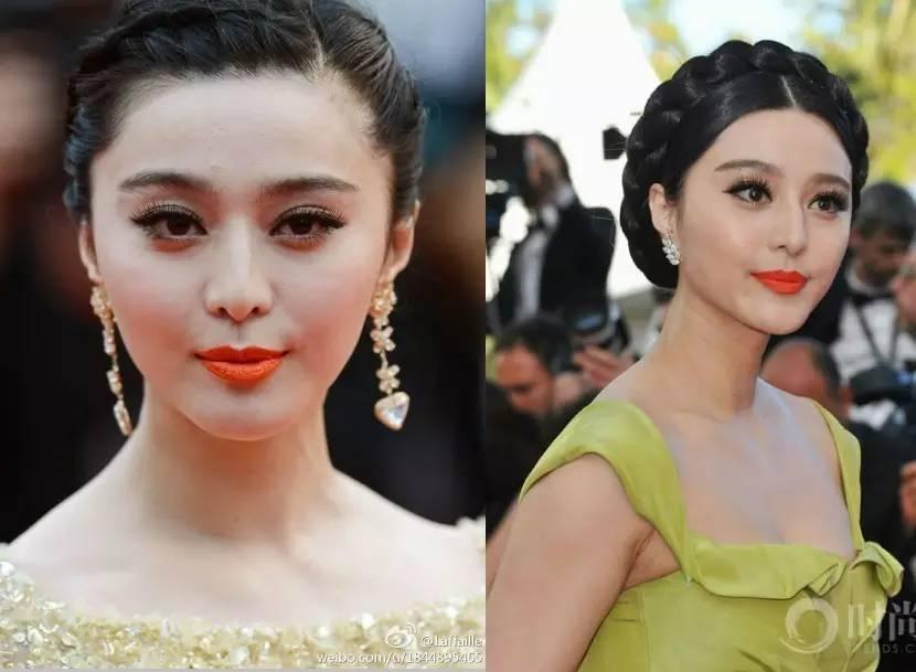 范冰冰涂亮橙的口红就像那模特一样,有焦灼感。