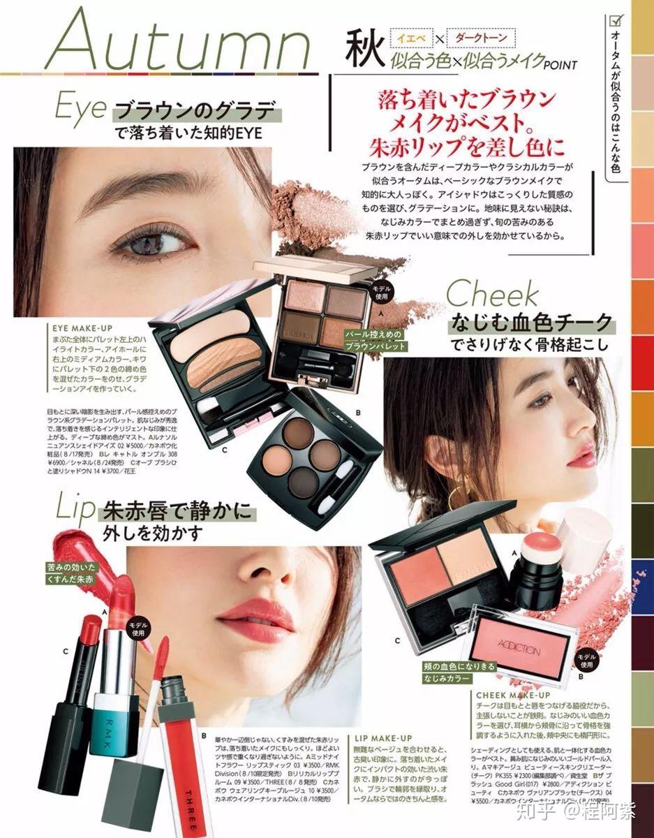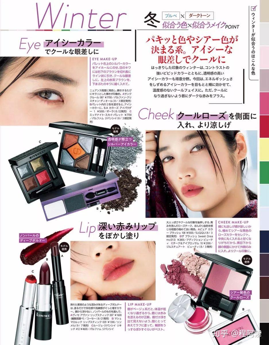 四时美感护肤品用色类型(记住妆容用色能在穿衣配色上延用。)