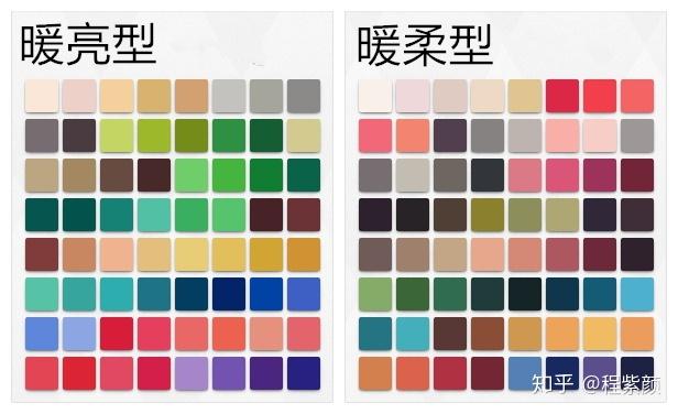 暖色型:暖亮、暖柔(配色纯度的别离)
