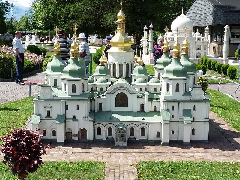 ↑ 上面两幅图是基辅的圣索菲亚大教堂的模子,第一张是原始版本教堂(没有保留至今)的复原模子,很拜占庭,无需多言,第二张是17-18世纪重建的教堂的模子,和本来的比拟已经完全不是统一座教堂了,人们管那种气概叫乌克兰巴洛克。