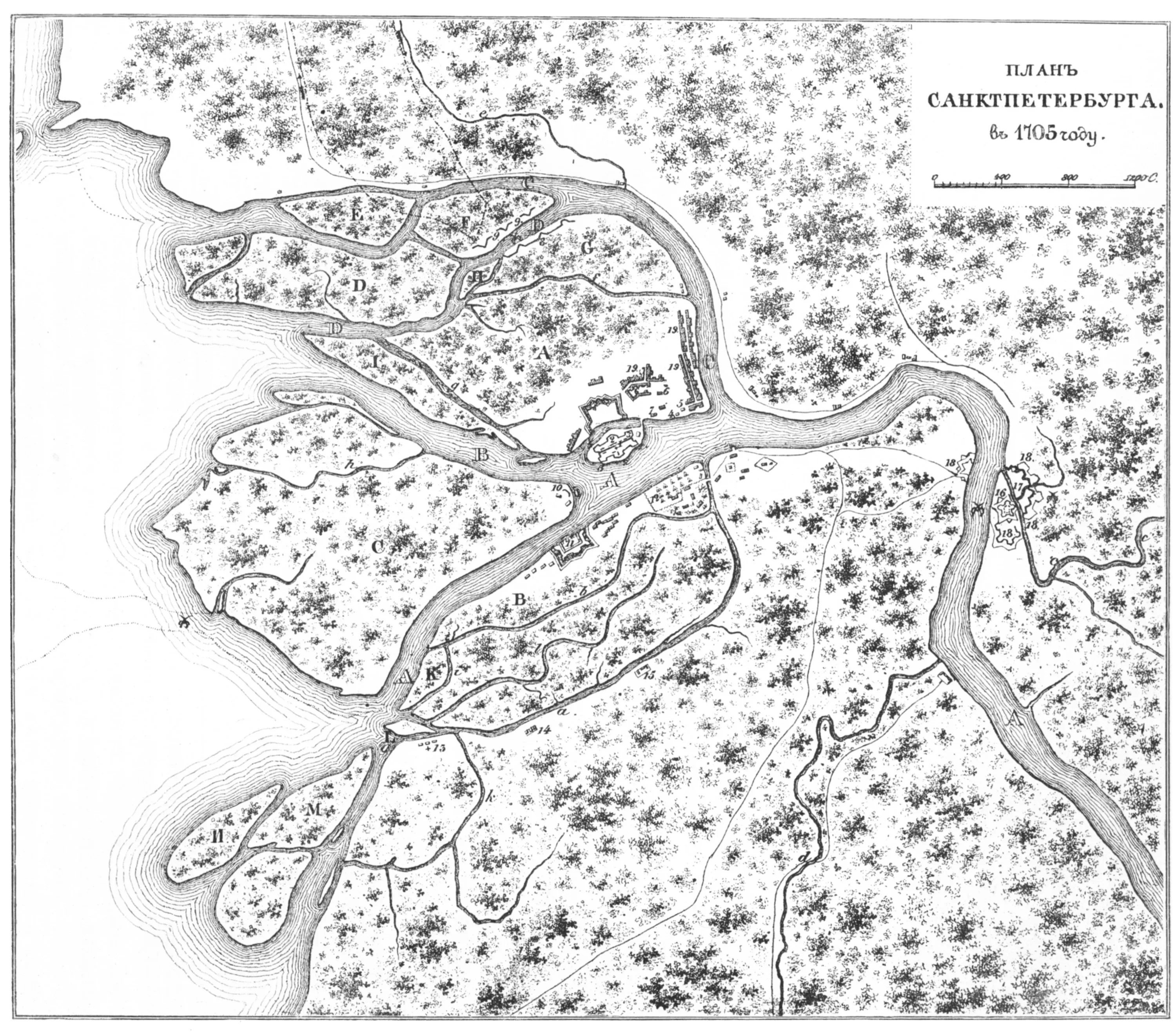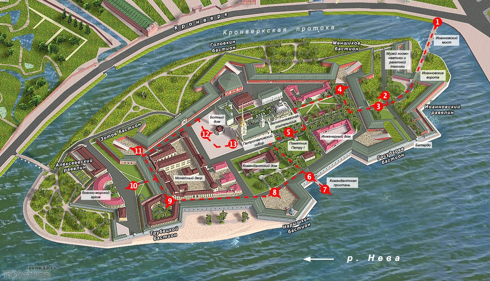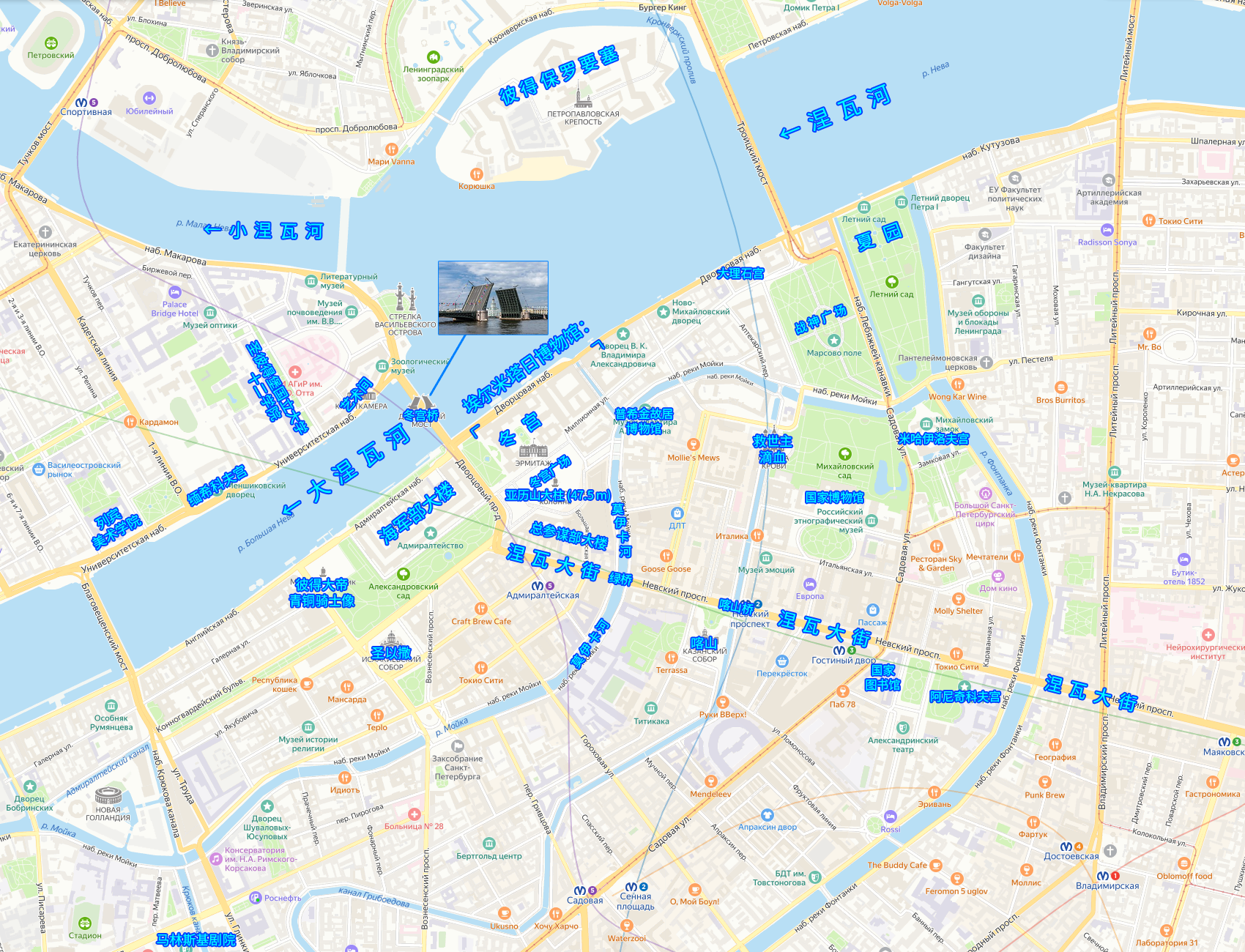 【嘛,仍是出于友好办事于广阔知友的目标,我再在此插入一张圣彼得堡核心地段的地图好咯。特意多截取了涅瓦河北岸,那里有座兔子岛,上面建有一座注目的六片雪花形要塞。】