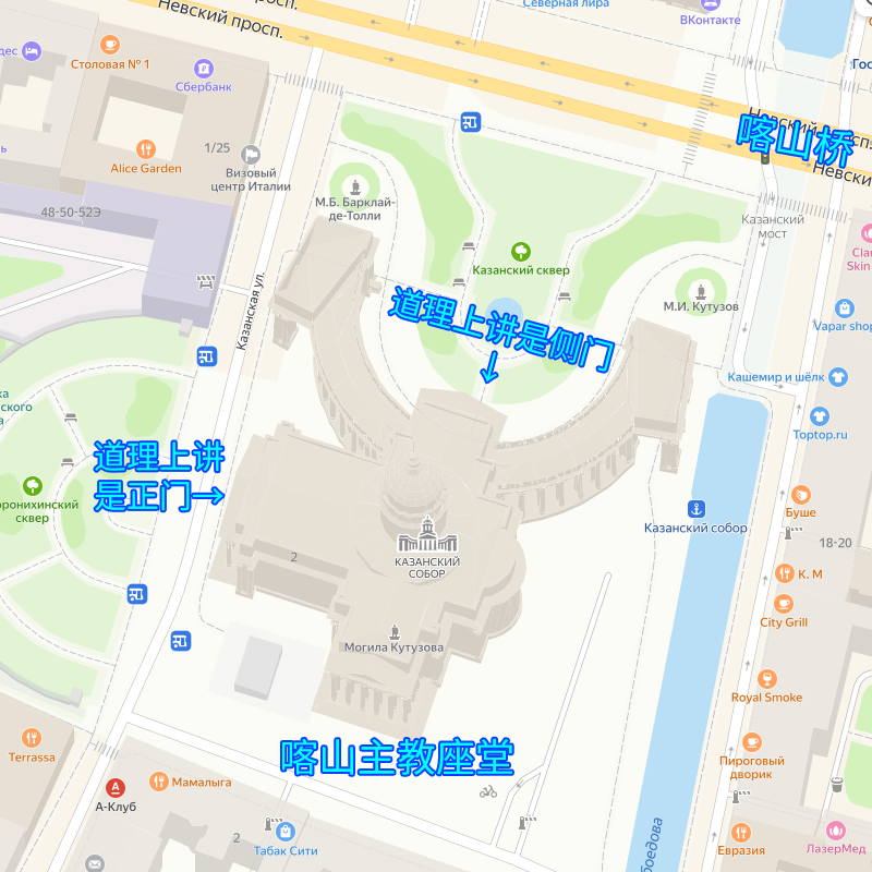 细心的知友可能已经发现了,它的平面规划明显地不合错误称——那一切都起源于在构图阶段就把设想师夹在中间的两难窘境:甲方1(正教会)要求正门必需开向西方(详细是什么宗教风俗的我不懂),甲方2(市政部分)又说,那么修教堂就和涅瓦大街平行了,一个毫无魅力可言的侧立面紧贴着主干道有碍市容。曲到有一天他偶尔从头翻出了尘封多年的圣彼得广场速写(也许),令他面前突然灵光一现(不,现实中一定是在项目论证阶段频频研讨),最末成就了二百年来我们所看到的神来之笔——在朝向大街的一侧,构筑一条派头恢弘的半圆形古典柱式长廊,让每个路过此地的人感触感染到的不是本身在古希腊神殿前行走流连,而是古希腊神殿跟着千年之前祭礼的金石之音弯曲百变,反过来将本身环绕,那是沉浸在爱琴海畔露天剧场的觉得。