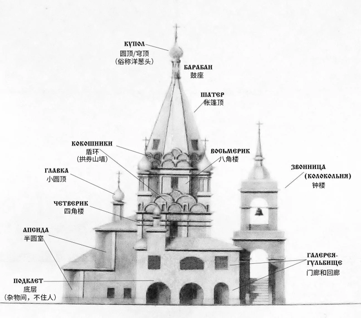 吐个槽:至少在建筑学范畴,毛子的分类逻辑可能和咱们不太一样,他们有个术语叫восьмерик,我没想好哪个译法最得当(“八角楼”或答应以?),泛指所有带有八个侧面、横截面呈八边形的构造,八棱柱属于восьмерик,八棱台帐篷顶也属于восьмерик。那和我们几何学上先划分柱体/台体/锥体再根据面数细分的习惯是反过来的。还有一个术语叫четверик,相对应地指“四角楼”,但横截面呈短粗的正十字形的竟然也算在内(当然,考虑到本身语言程度和理论常识程度的单薄,我那一段吐槽也可能其实不准确,我姑妄听之,各人姑妄言之)