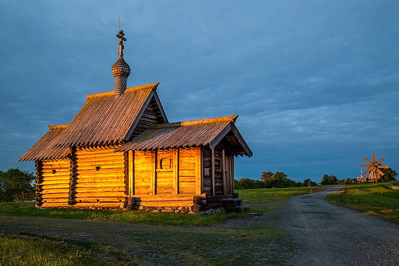 ↑ 拉撒路新生教堂,现位于卡累利阿,奥涅加湖的基日岛上,始建于1391年,被认为是保留至今的俄罗斯木造教堂中最古老的一座(再早的都无了,也没有设想图或小模子传下来,又不克不及指望那些写纪年史的教士用文字表达清晰那楼详细怎么盖的),当然传承下来的次要是构造,木材部件自己恐怕已经不晓得换过几轮了。别的,基日岛那个处所关于建筑史学界很重要,下面还会提到。