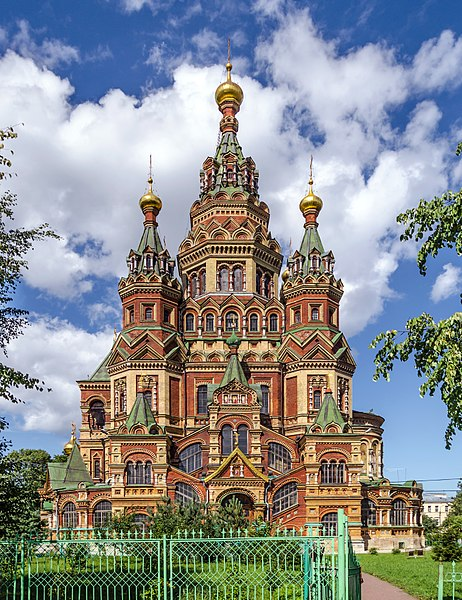 ↑ 彼得霍夫宫的圣彼得和圣保罗大教堂,建于1894—1904年,高度是70米(也很了不得了)。